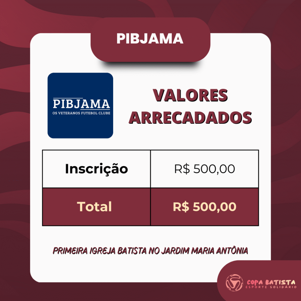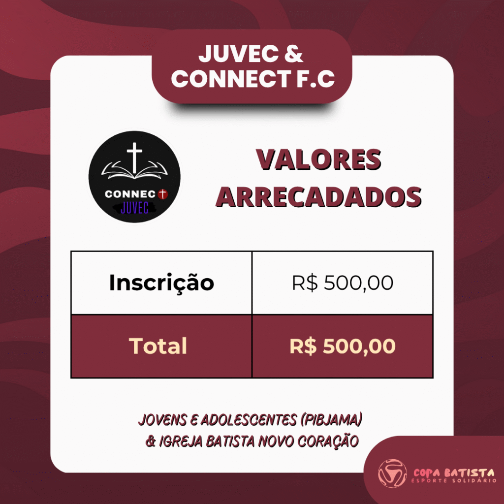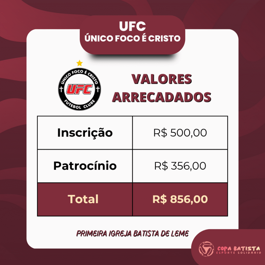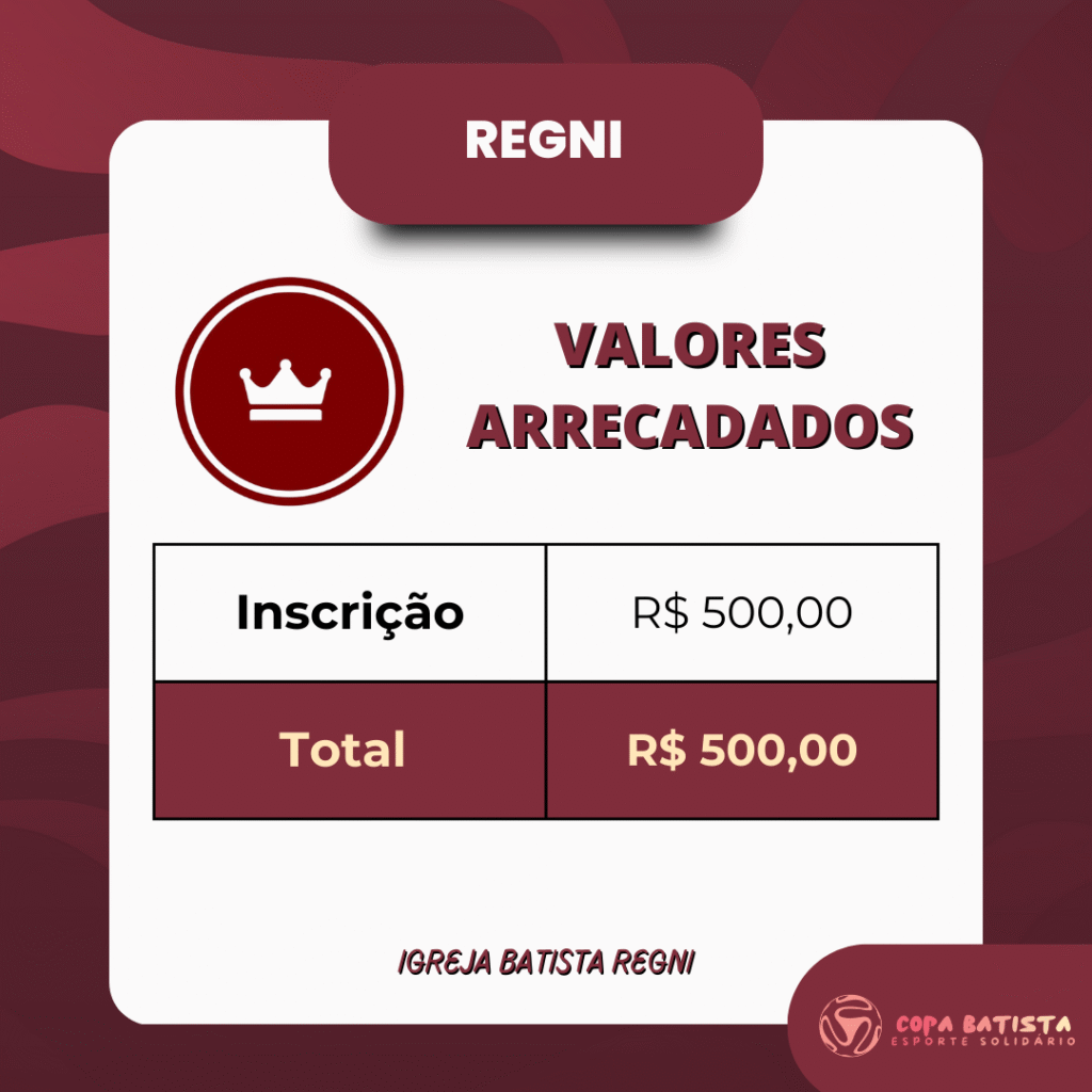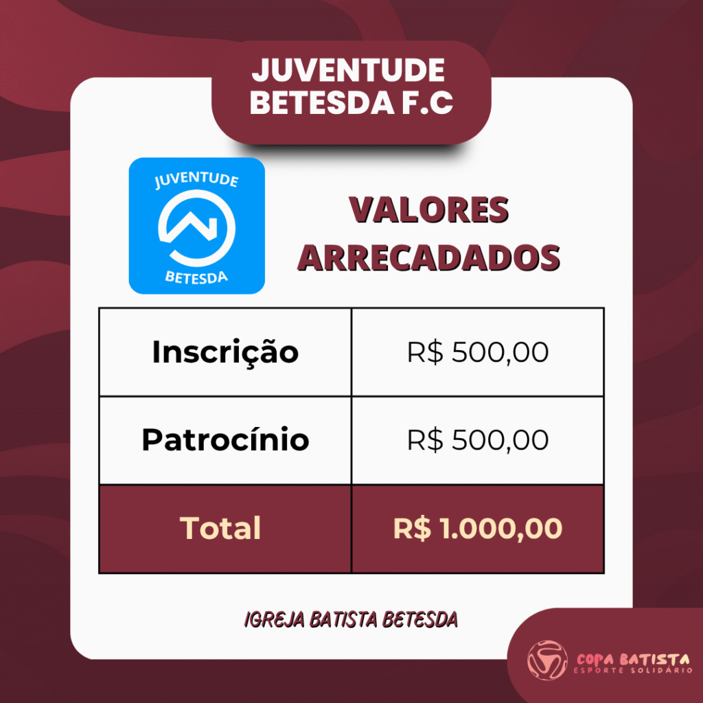 Para garantir uma gestão eficiente e organizada dos recursos, solicitamos que a igreja participante da Copa fique responsável por concentrar todas as contribuições e efetuar o envio do valor completo para a organização da Copa Batista.